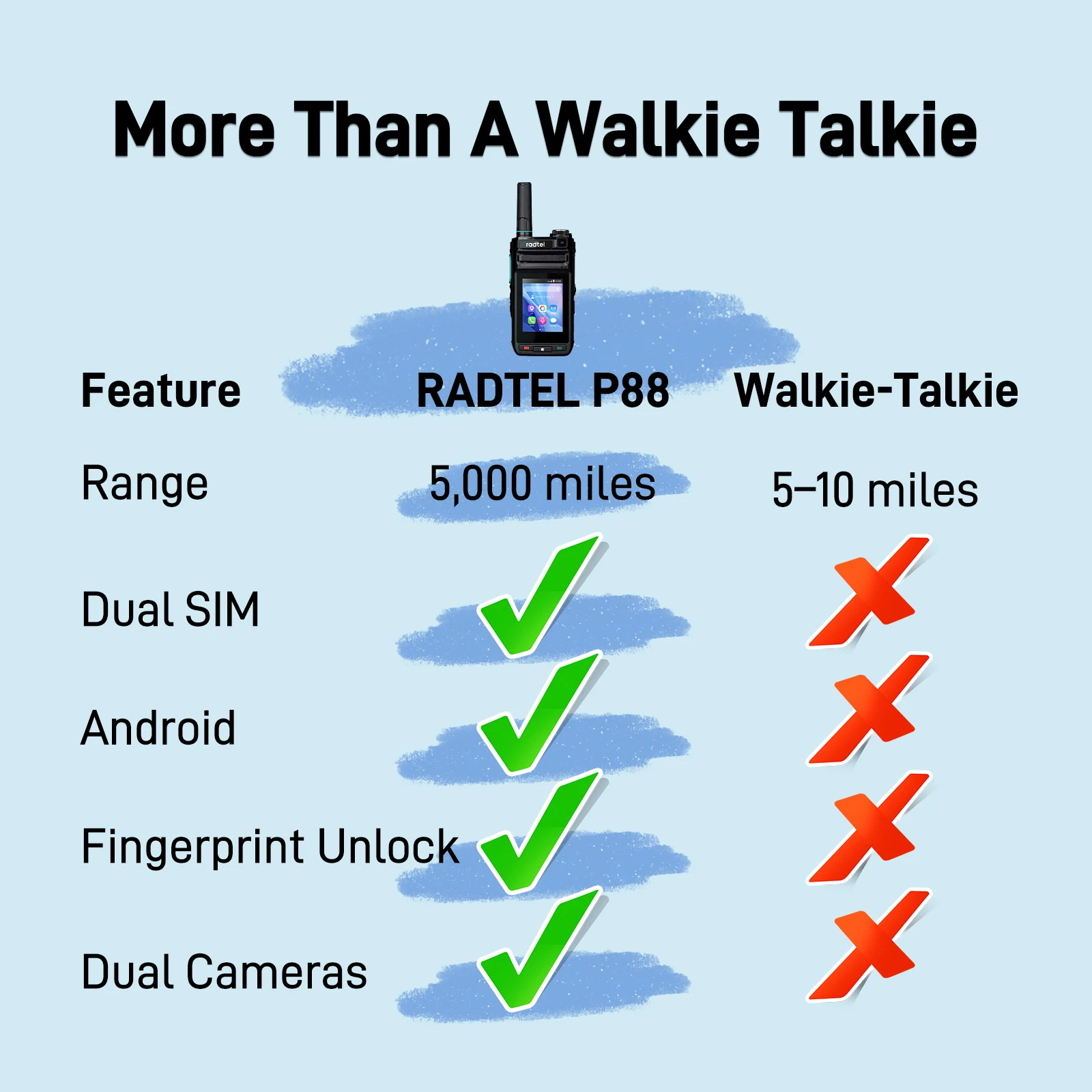 Radtel-P88 Android Walkie Talkie Dual SIM Card Slot Long Range 5000 Miles Bluetooth NFC WiFi Fingerprint Unlock GPS Feature