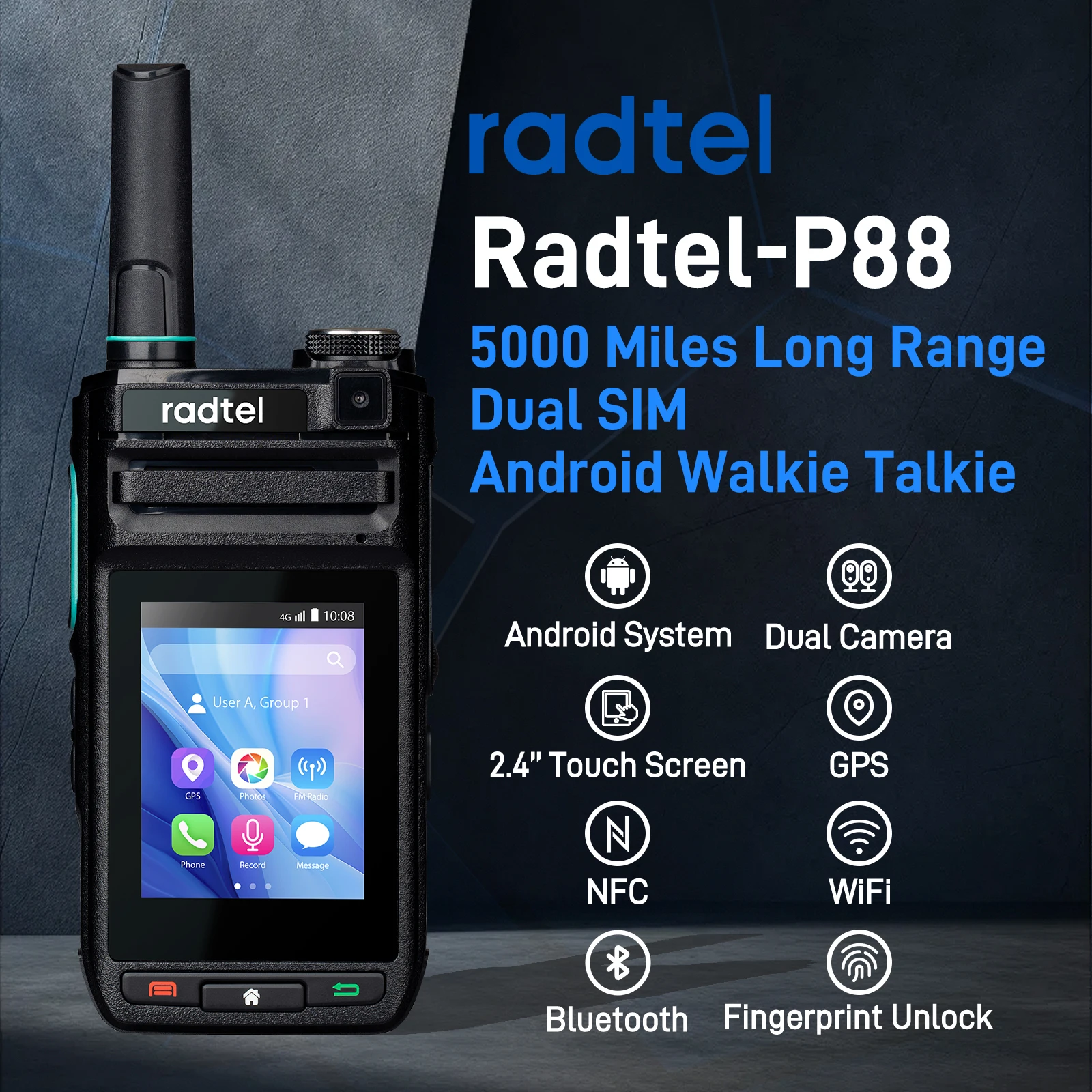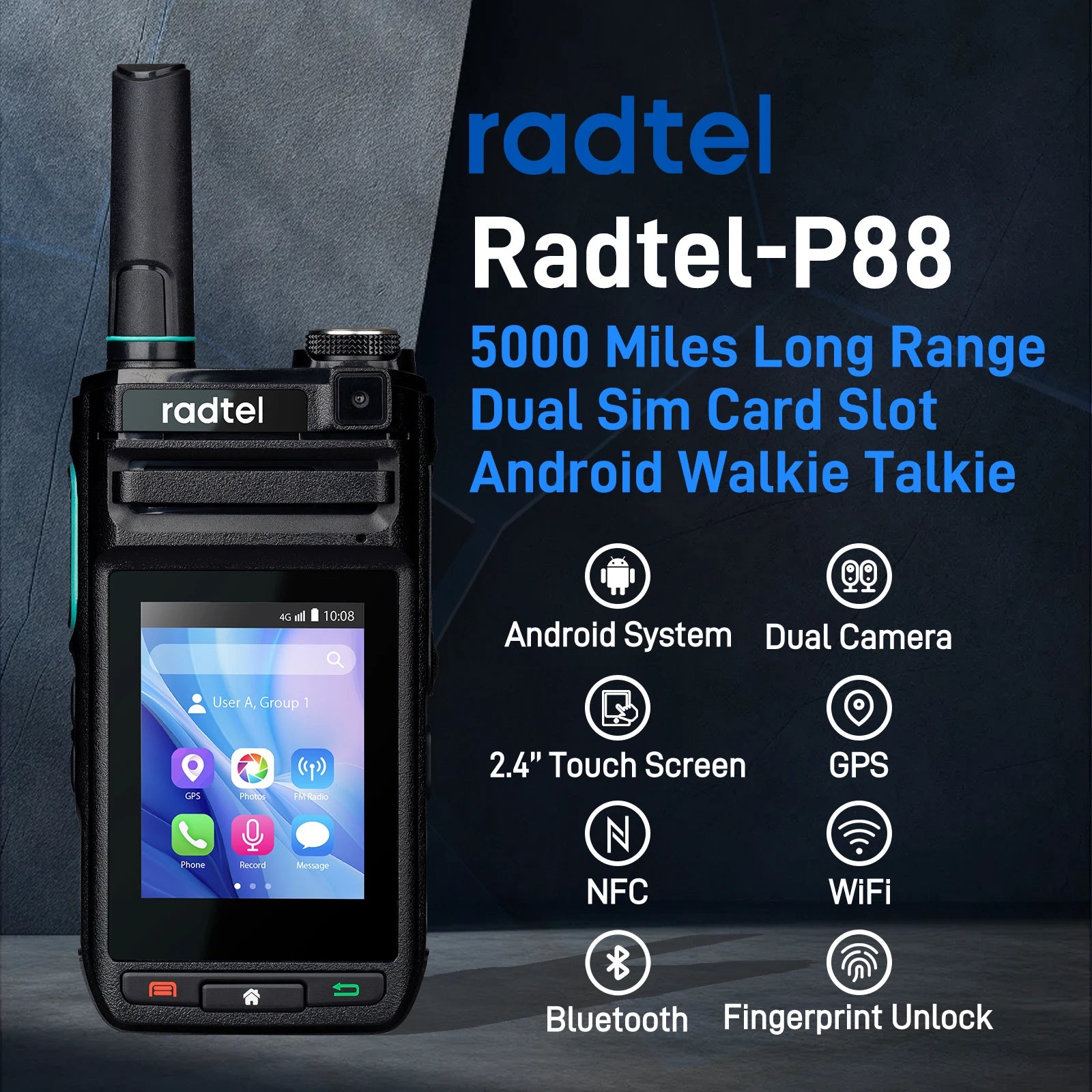 Radtel P88 Android POC Walkie Talkie Dual SIM Card Slot Long Range 5000 Miles Bluetooth NFC WiFi Fingerprint Unlock GPS Feature