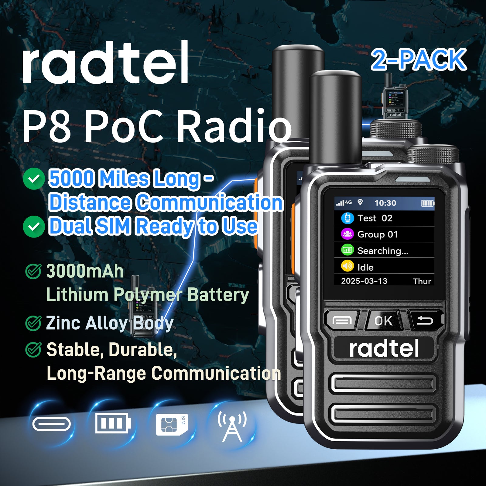 Radtel P8 Rapid POC Radios Unlimited Range, 5000 Miles Above Walkie Talkie Nationwide Handheld PoC for Adults Rechargeable PTT, Long Distance Walkie-talkies with Lights(2 Pack)