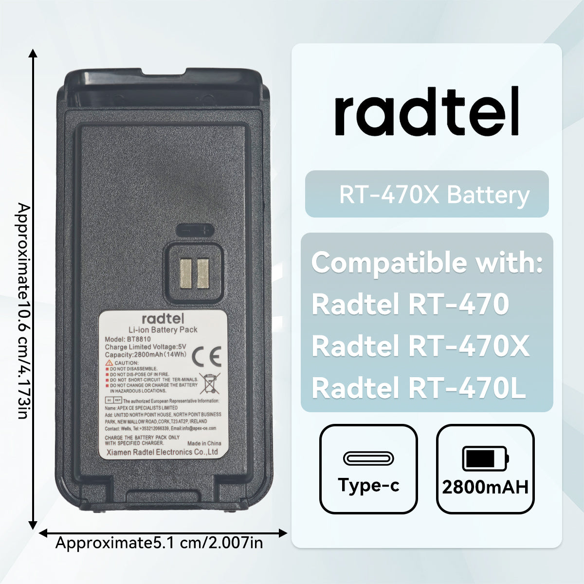Radtel RT-470X Battery Walkie Talkie Li-ion Battery Pack 7.4V 2800mAh 14Wh BT8810 Compatible RT-470 RT-470L  Two Way Radio