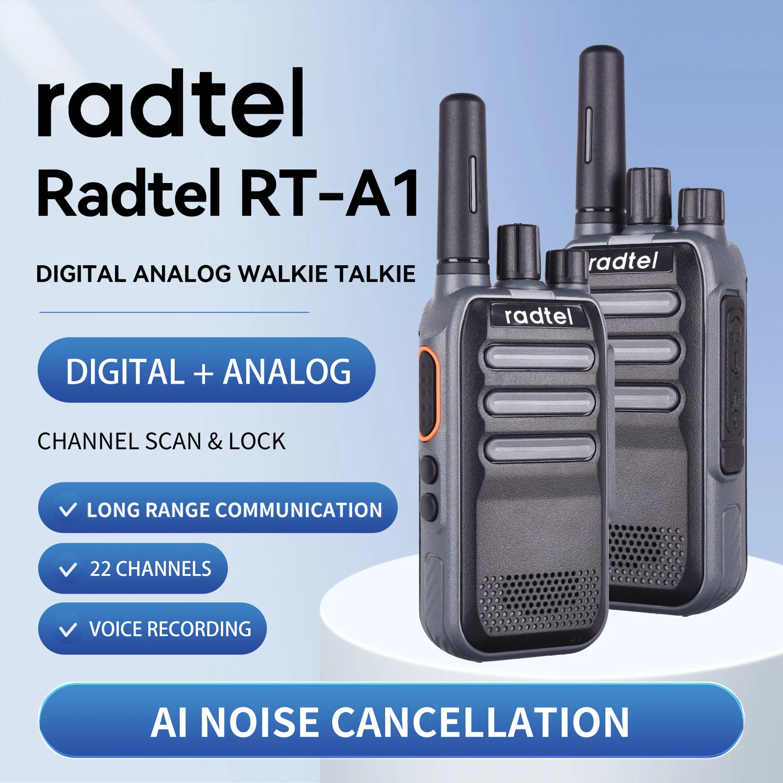 Radtel RT-A1 FRS Analog & Digital Two Way Radio with AI Noise Reduction Dual Noise Cancelling Walkie Talkie Voice Recording & Playback Long-Lasting Battery for Construction Site Bar Airport