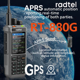 Radtel RT-880G GPS/APRS 10w Multi Band Ham Radio HF UHF VHF Dual Band with AM USB LSB CW CB LW MW SW SSB Reception, 1024 Channels, 2400mAh Battery